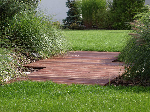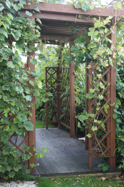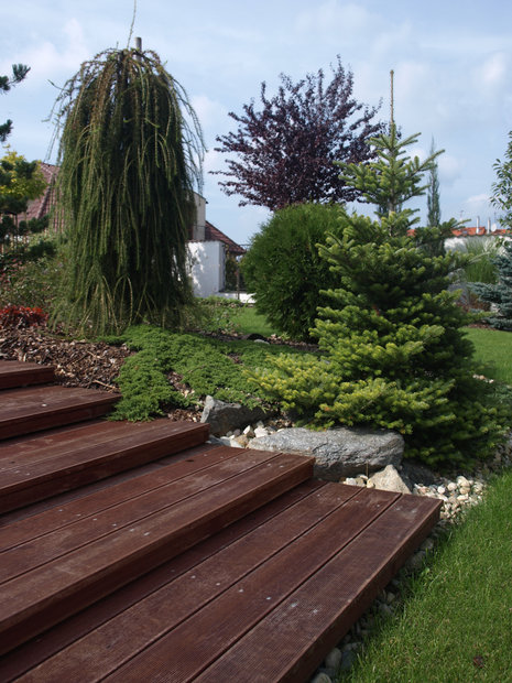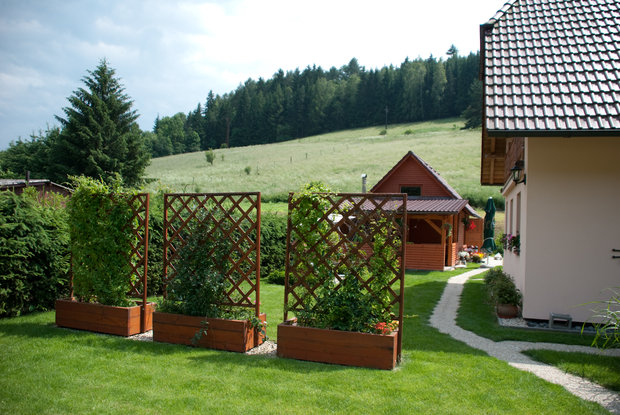Inspirační fotografie ukazující škálu možností použití dřeva v zahradní tvorbě
