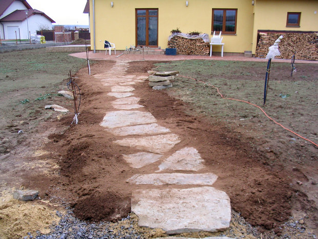 - stavbu zahradních cest (přírodní kamenná dlažba, pískované cesty…)