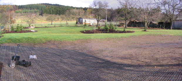 V tomto případě se jednalo o přetvoření staré užitkové zahrady na zahradu z větší části okrasnou. Měla obrovský potenciál nejen v nádherném prostředí navazující krajiny, ale také v přítomnosti vzrostlých (převážně ovocných) stromů, které jsou, pokud jsou zdravé a na vhodném místě, tím nejcennějším. Tvoří třetí dimenzi zahrady, prostor, kterého u jiných zahrad dosáhneme až po určité době růstu rostlin.