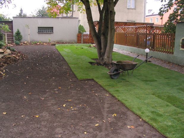 - založení trávníku z výsevu nebo pokládkou travních koberců