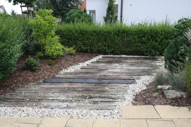 Bez technických prvků se neobejdeme v téměř žádné oblasti zahradní architektury, proto pracujeme i s neživými materiály, nejraději s přírodními materiály jako je dřevo a kámen v různých formách, protože ty působí v zahradní kompozici přirozeně a dosahují vysokých estetických kvalit.