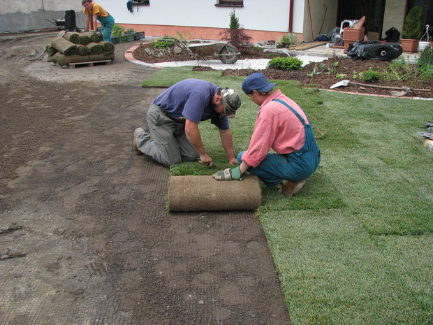 - založení trávníku z výsevu nebo pokládkou travních koberců